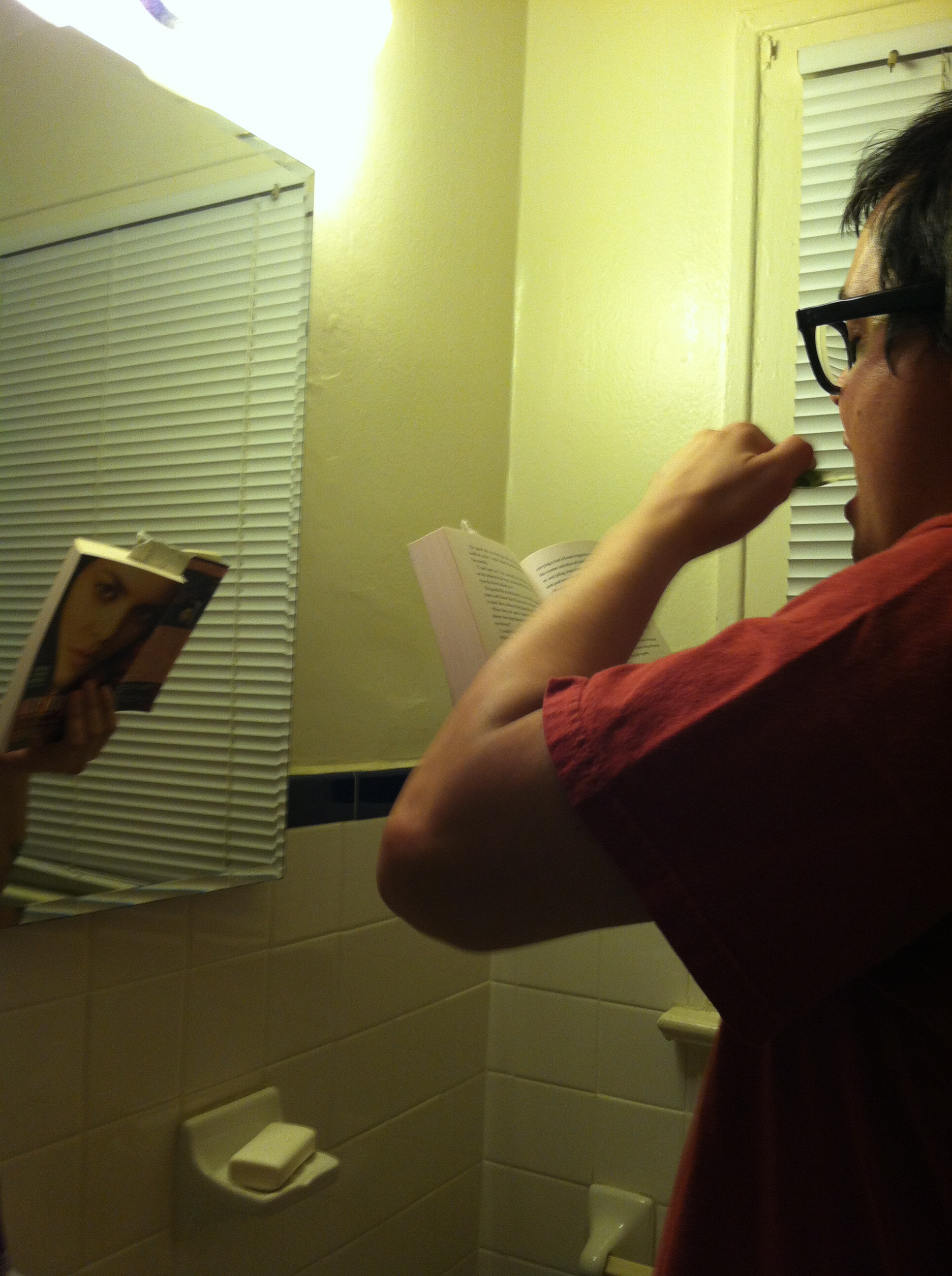 Loving the reading while brushing teeth pic, that’s true commitment 🙂